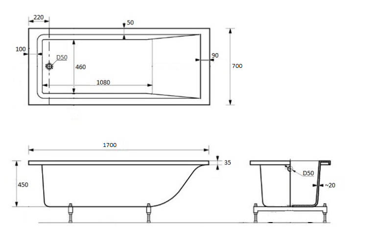 Прямоугольная ванна Asti с плавным наклоном спинки, повторяющим анатомические особенности тела человека. Ванна с максимальной вместительностью, комфортно будет даже высоким людям.